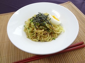 1.中華麺を茹で、流水でもみ洗いをして、水気を切ります。