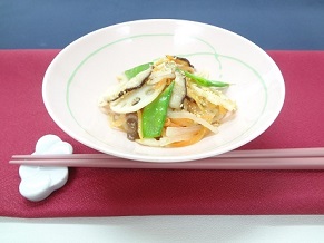 2.大根とにんじんは千切りにし、しいたけは薄切りにします。