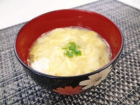 5.沸騰したら、卵を菜箸に伝わらせながら糸状に円を描くように流し入れます。