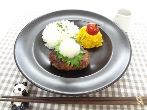 8.器にハンバーグと大葉、大根おろし(盛り付け分)を盛り付け、「7」のソースをかけて出来上がりです。