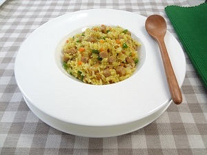 1.ウインナーは約7㎜の角切りにし、ニンジン・ピーマン・玉ねぎは約3㎜の角切りにします。